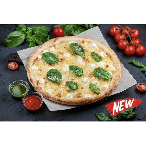 сыр Фета, сыр Филадельфия, сыр Моцарелла,сыр Пармезан, соус Сырный, шпинат,соус Джек.П..