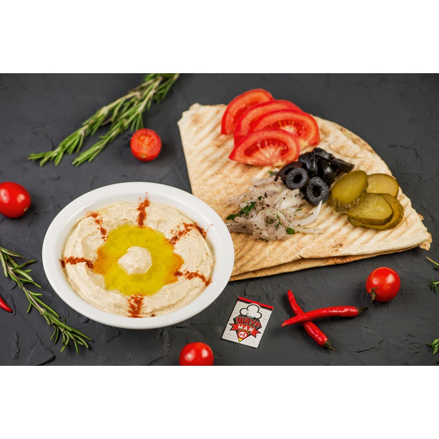 Хумус — необыкновенно вкусное пюре из турецкого гороха (нута), в которую мы добавляем кунжутную пасту с лимоном и паприкой. Закуска из хумуса — кладезь витаминов, растительных белков и клетчатки. Если вы думаете, что это невкусно, вы ошибаетесь. Попробуйте у нас настоящий хумус! Это будет ваше лучшее блюдо вечера, которое украсит стол не только в постные дни. Мы подаем его с теплой питой, холодным оливковым маслом и овощным салатом. Сытно, малокалорийно и очень полезно. У него необыкновенный яркий вкус, который нравится нашим взрослым и маленьким посетителям. Удивите своих гостей или родных восточной закуской. К вашим услугам еда на дом с адресной доставкой в любой район города.